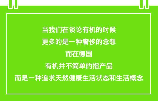 如今,有機生活還成為德國的一項國策,有機工業(yè)和消費有機產(chǎn)品的民眾,都可得到減稅的優(yōu)惠。